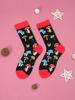 1 Pair Multicolor Mushroom Umbrella With Black Background Breathable Men's and Women's Mid-calf Socks Suit In All Seasons