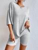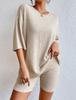 Conjunto de Top y Shorts de Punto Holgado Casual de Moda con Cuello Redondo para Verano Ropa de Mujer Cómodo Transpirable Color Sólido