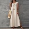Cómoda mezcla de algodón y lino: Confeccionado con una mezcla de algodón y lino, este vestido ofrece una sensación suave y liviana para brindar comodidad durante todo el día.