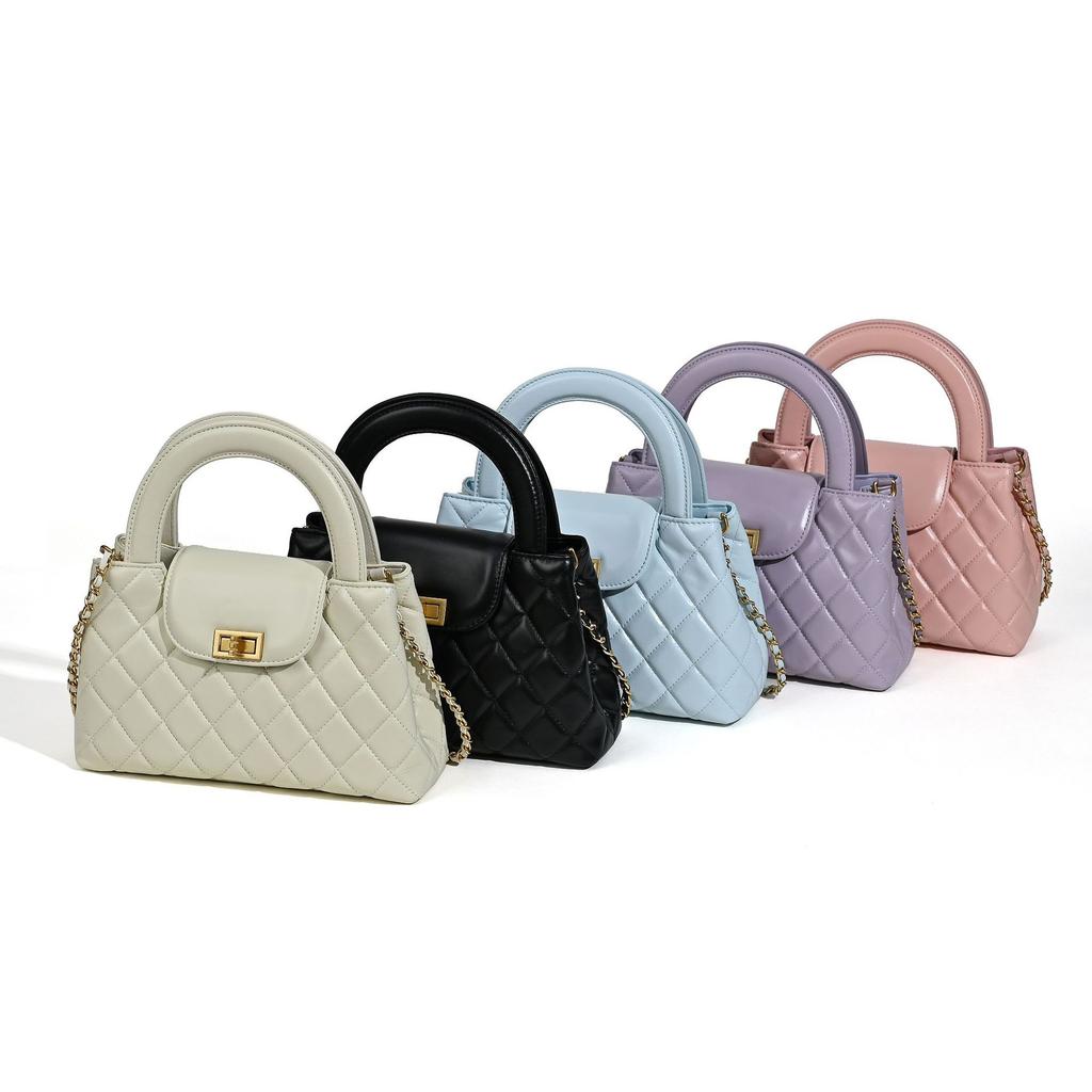 2025 New Chain Bag Grid Handbag Genuine Leather Women's Bag Fashionable And Versatile Single Shoulder Crossbody Women's Small Square Bag