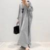 Women's Long Skirt, Striped Straight Tube Skirt, Shirt Skirt, Loose Jacket, Seven Quarter Sleeve Dress