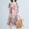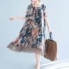 Summer New Round Neck Vintage Elegant Floral Printing Casual Dresses Women Loose Casual Comfortable A-line Chiffon Dresses