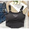 Camisetas sin mangas cortas con letras de diseño y almohadilla para sujetador, camisetas sexys a rayas delgadas, camiseta sin mangas con cinturón de hombro Y2K, camiseta sin mangas con anillo de hierro