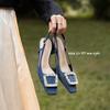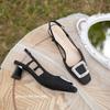 Niche design bag head sandals women's rhinestone square buckle outer wear thick heel high heel single shoes one-word buckle belt