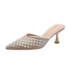 Baotou zapatillas de media caña para mujer verano nueva moda pedrería tacón fino punta tacón alto zapatillas frescas mujeres