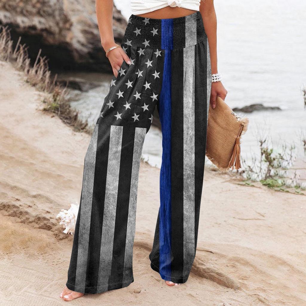 Pantalones de cintura elástica para mujer, pierna recta, pantalones estampados informales sueltos con bolsillos