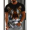 Men's Casual Short Sleeve T-Shirt - Animal Print Skull & Foliage Graphic Breathable Summer Tee Round Neck for Outdoor & Casual Wear, Summer