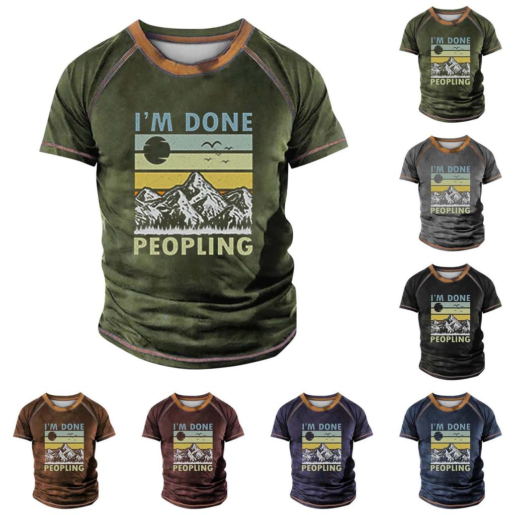 Men's Raglan T-shirt Retro Short Sleeve Round Neck Letter Printing Tops
