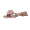 Pink flowers with skirts, slippers for women's summer wear, new gentle vacation thick-heeled sandals