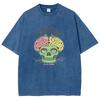 Skull Anatomy Brain Print Women's Wash T-Shirt Summer Fashion Cotton Oversized Half Sleeve American Retro Top