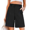 Women's Square Pocket Elastic Waist Casual Cotton And Linen Shorts