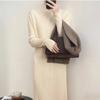 Otoño Invierno Nuevo Color Sólido Cuello Medio Alto Manga Larga Moda Vestido de Punto Mujer Alta Calle Vestidos Casuales Elegante Bata