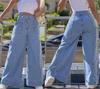 Women Casual Jeans High Waist Loose Wide Leg Pants Fashion Street Bleached Button Long Versatile Trousers