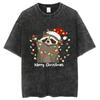 Christmas Cartoon Animal Print Women's T-Shirt New Oversized Washed Denim Short Sleeve Cute Casual Top