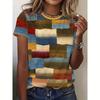 Women's checkered printed T-shirt, round neck casual short sleeved top, large streetwear, summer