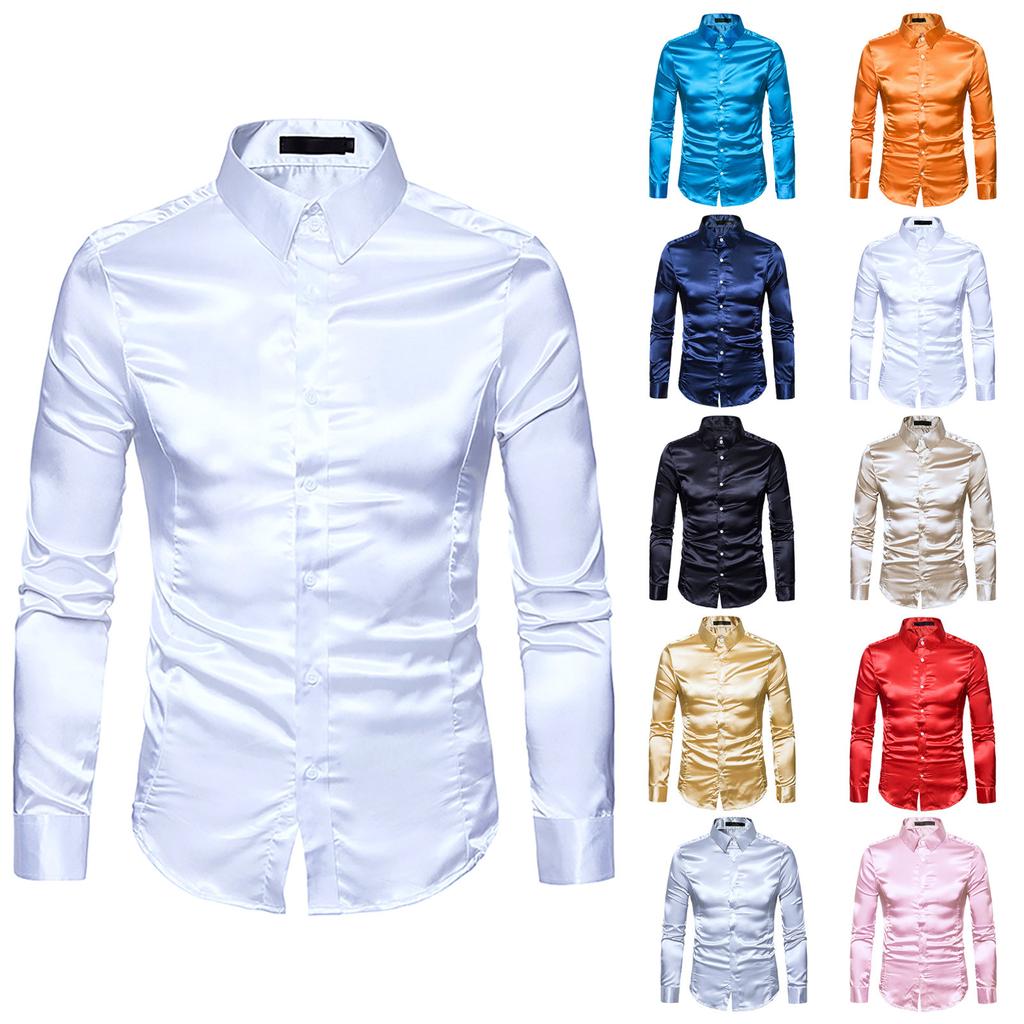 Camisa de solapa de manga larga ajustada informal con personalidad de color sólido a la moda para hombre