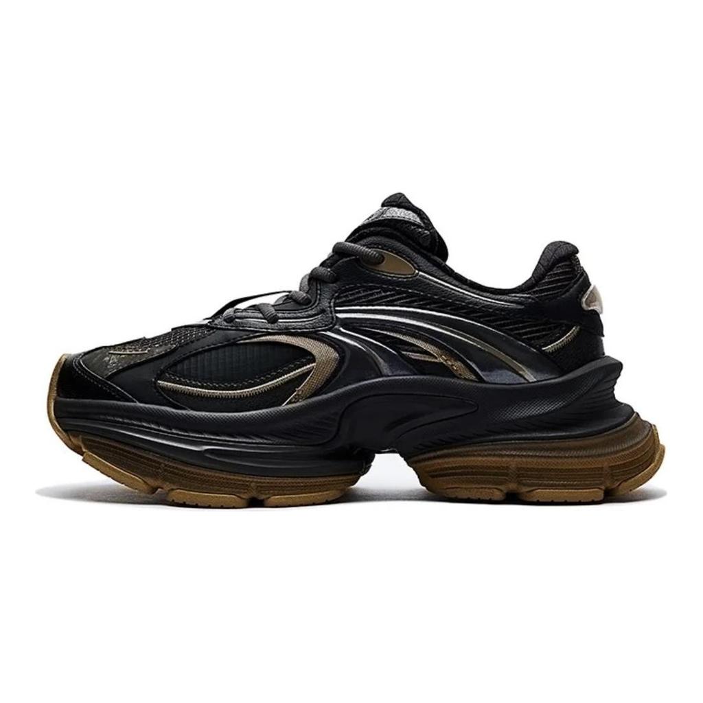 Anta Fuyiao 2 Cinco Anillos Moda Cómodo Absorción de Impactos Antideslizante Resistente al Desgaste Zapatillas Bajas para Papá Mujer zapatilla Negro Dorado 122518899X-2