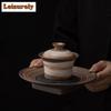 Sopera de té de mano hecha a mano con esmalte gris madera retro de 140 ml, gaiwan, cuenco con tapa para preparar té, accesorios de decoración para regalo