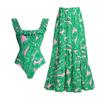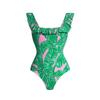 Este elegante traje de baño de una pieza está diseñado a medida para mujeres que buscan un look de playa moderno y favorecedor.. Con un vibrante estampado verde y detalles de volantes, ofrece un toque de moda mientras realza tu silueta natural.. Hecho de nailon de alta calidad, este traje de baño garantiza un ajuste cómodo y durabilidad, perfecto para disfrutar de los días soleados junto a la piscina o en la playa.. Su diseño reductor añade confianza, convirtiéndolo en una pieza esencial para tu colección de bañadores.