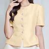 ZANZEA Blusa informal de verano de manga corta con cuello redondo y color liso para mujer