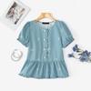 ZANZEA Blusa informal de verano con cuello redondo y manga corta estampada para mujer