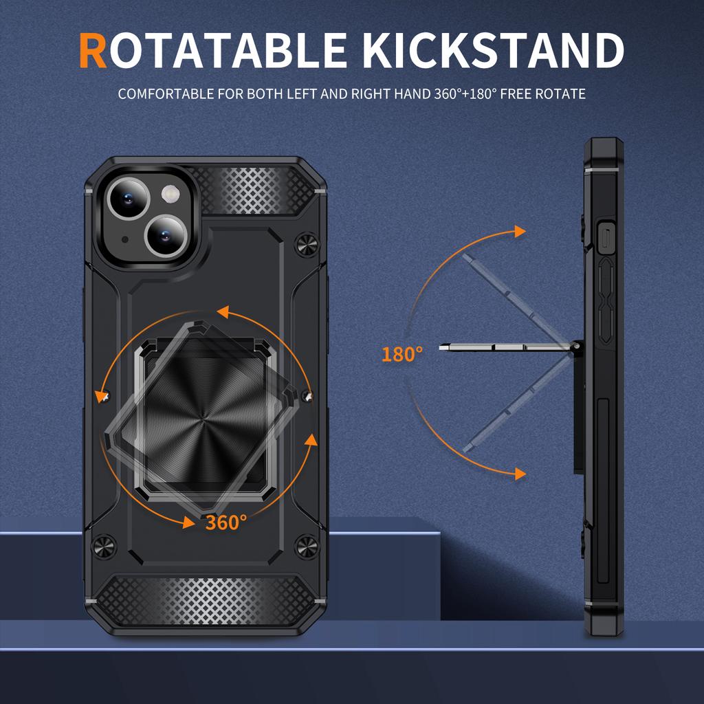For iPhone 15 Case Ring Holder PC+TPU Corner Cushioning Phone Cover