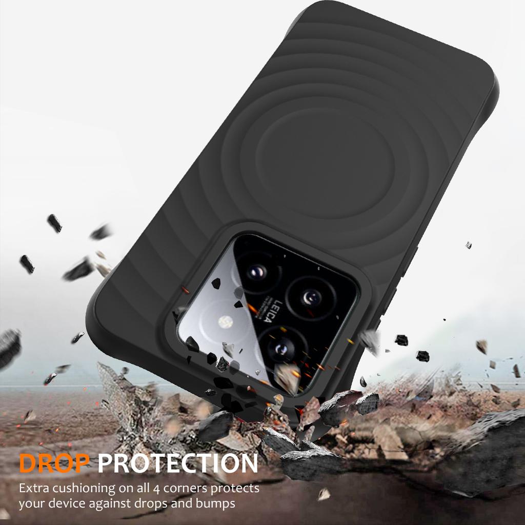 For Xiaomi 14 Case Compatible with MagSafe Ripple Texture Liquid Silicone Protective Cover with Strap