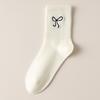 Solid Color Versatile Mid-calf Socks, Simple Long Socks for Autumn and Winter, Cute Bow Cotton Socks, Women's Socks for Spring and Autumn