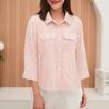 ZANZEA Blusa de rayas casual suelta de manga 3/4 con cuello camisero para mujer