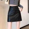 Faldas de mujer de otoño e invierno, falda delgada de cintura alta de medio cuerpo, Falda corta de cuero PU antideslumbrante versátil para mujer