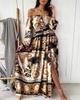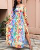 V-neck Vintage Long Sleeve Slit Dress with European & American Print