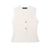 European & American Women's Summer Knit Vest & Skirt Set with Gold Buttons