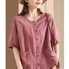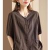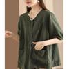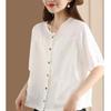 Women's 2024 Summer Cotton Linen Mid-Sleeve Cardigan Shirt - Casual, Slimming, Single-Breasted Design