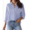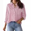 Women's Classic Striped Long Sleeve Button-Up Shirt with Pocket for Office Work Stylish Top Casual Businesswear