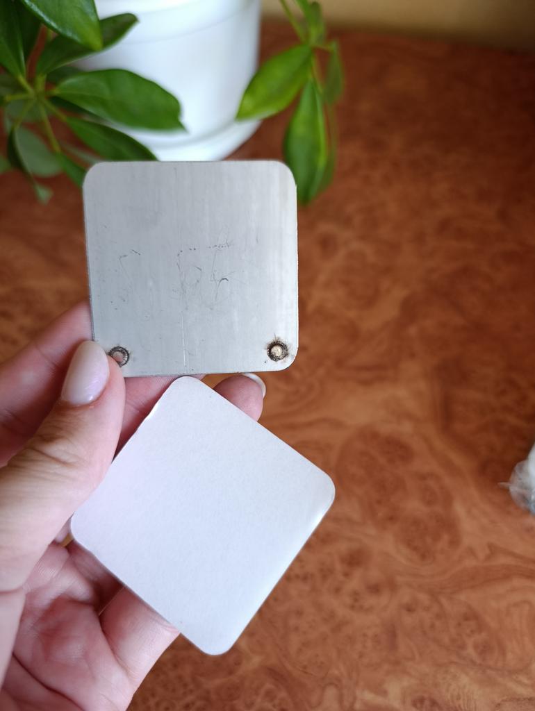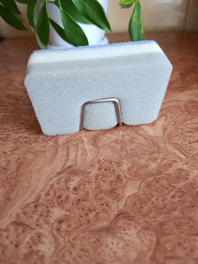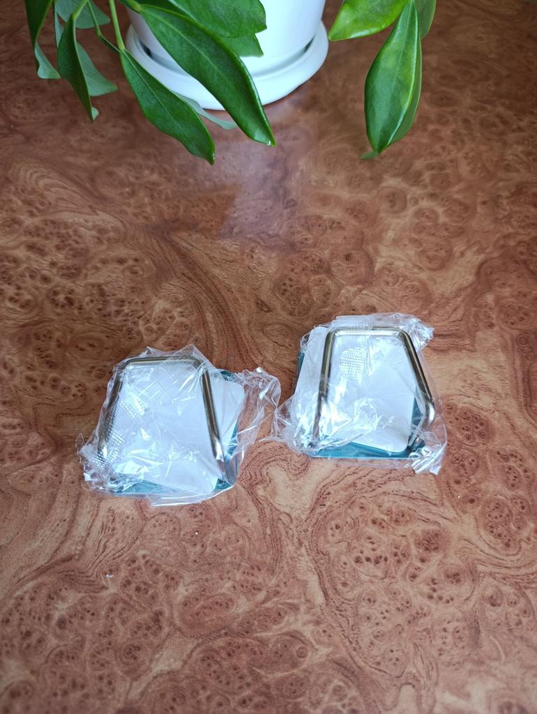 Portaesponjas para fregadero. Van 2 piezas. Material del soporte: acero inoxidable, sin miedo a la humedad.. Dimensiones: 4,9*4,9 cm. El soporte es fácil de instalar, no requiere perforación, simplemente se fija con cinta adhesiva fuerte de doble cara (incluida) y se sujeta bien en el fregadero.. El soporte autoadhesivo se puede utilizar no sólo para el fregadero, sino también para otros utensilios de cocina (tablas, paños, etc.). Pedí específicamente para el fregadero. Ya colocado, se sujeta firmemente, ahora el bizcocho para platos siempre está en su lugar.