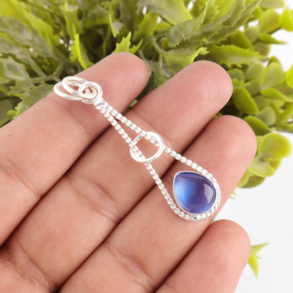 Dark Blue Cat's Eye Gemstone Jewelry, 925 Sterling Silver Pendant, Designer Handmade Silver Pendant For Wedding Gift
