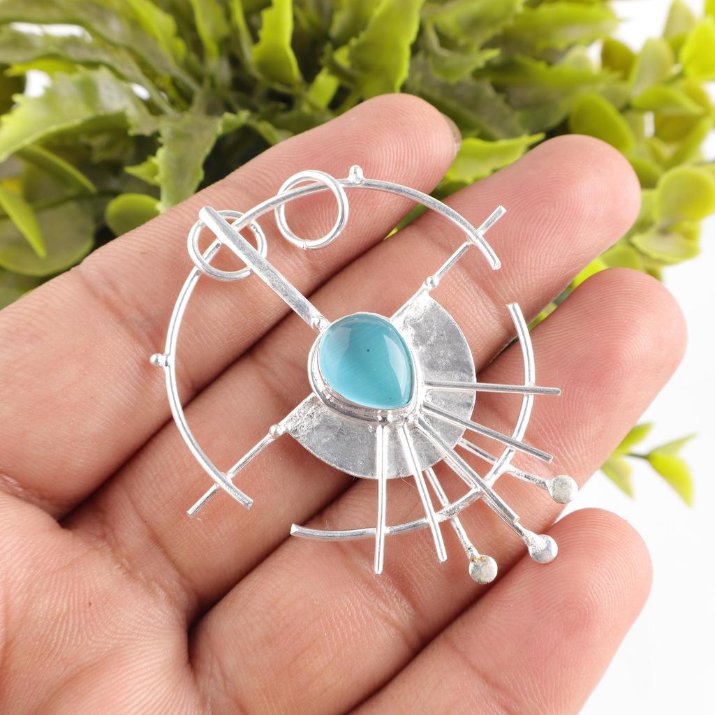 Blue Cat's Eye 925 Solid Sterling Silver Pendant, Handmade Gemstone Pendant Jewelry, Gifts For Wife Brand New Pendant