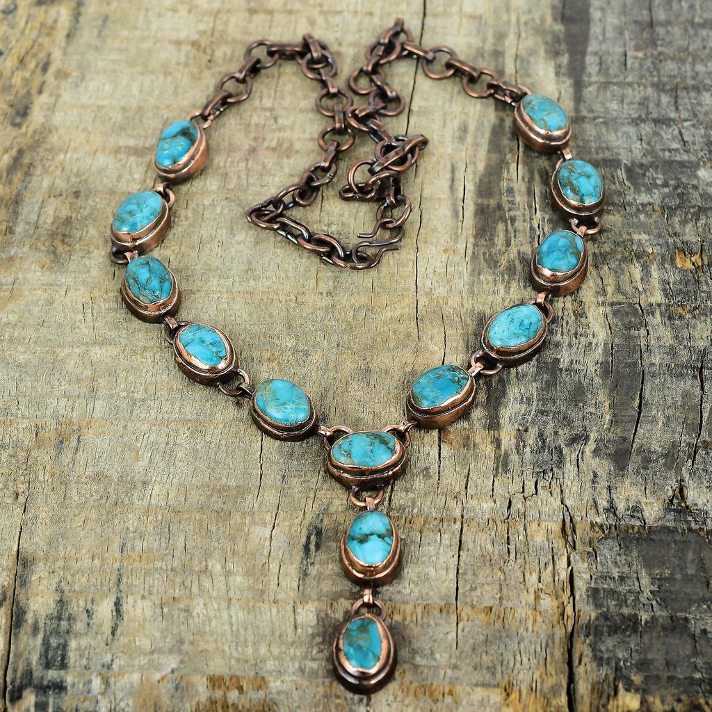 Tibetan turquoise necklace electroformed copper necklace adjustable chain necklace handmade electroformed jewelry gemstone necklace for gift