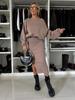 Elevate your wardrobe with this stylish set featuring a loose one-shoulder batwing sleeve sweatshirt paired with a long dress. Crafted from high-quality polyester, this ensemble offers both comfort and elegance. The unique design of the batwing sleeves adds a contemporary flair, while the sleek silhouette of the long dress provides a flattering fit. Perfect for casual outings or relaxed gatherings, this set is a versatile addition to any fashion-forward wardrobe.