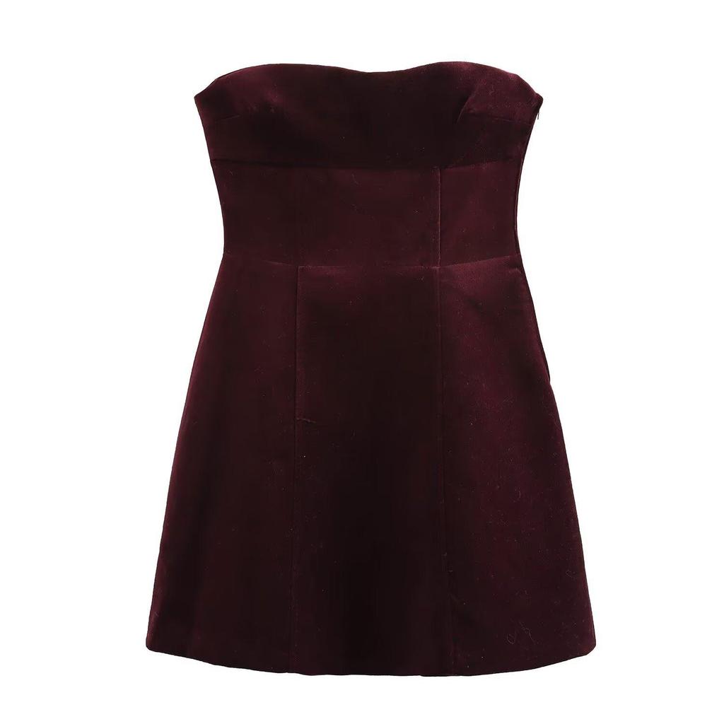 Experience elegance and boldness with this strapless A-line short dress. Crafted entirely from luxurious velvet, its smooth texture provides both comfort and a touch of sophistication. Designed to flatter any silhouette, this dress combines timeless style with a modern twist. Perfect for a night out or special occasion, it's sure to make a statement with its vibrant color and impeccable fit.