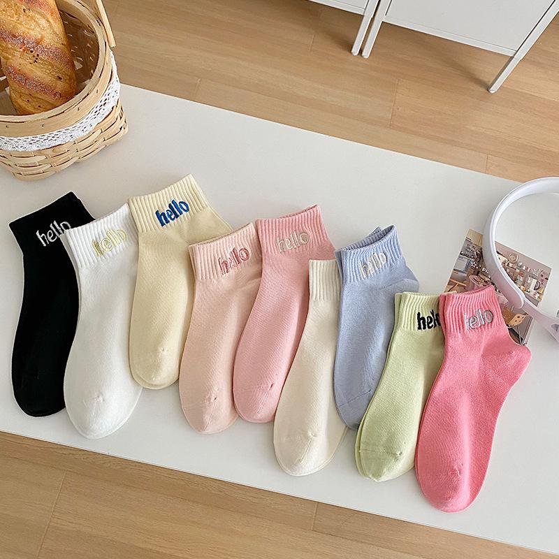 Women's Spring and Summer Embroidered Letter Solid Color Cotton Sweet and Versatile Short Socks