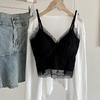 Ya Shuang French Embroidery Lace Camisole with Fixed Cups and Pads - Versatile & Comfortable