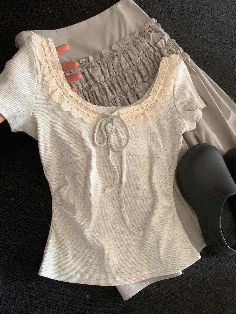 Women's Summer 2025 Lace-Trimmed Slim-Fit Short-Sleeve T-Shirt - Stunning, Beautiful, Unique