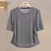 Women's Summer Bamboo Linen Beaded Crew Neck T-Shirt