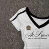 Camiseta de Manga Corta con Cuello Alto y Bordado de Mariposas Chinas Retro para Mujer