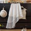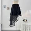 Irregular Lace Trim Mesh Midi Skirt for Women - Spring 2025 High-Waist A-Line Pleated Tiered Design.