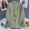 Elevate your street style this spring and autumn with this chic beige petite blazer designed specifically for women. Crafted from high-quality polyester, it offers a comfortable and lightweight feel, perfect for layering during transitional weather. This blazer features a tailored fit that effortlessly complements a variety of outfits, whether you're pairing it with jeans for a casual day out or dressing it up for a more polished look. Its versatile design and sophisticated silhouette make it an essential addition to your wardrobe, ideal for both casual and semi-formal occasions.