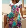 Moda de Verano Vestido de Mujer con Cuello en V Manga Corta Hermoso Estampado de Mariposas Vestidos Sexys Falda Corta