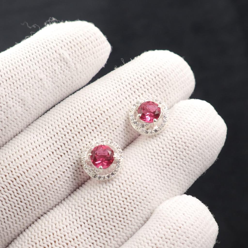 Piedra Preciosa Turmalina Rosa Joyería de Plata de Ley 925 Pendientes de Tuerca de Circonita 0.41" CZE-8-4