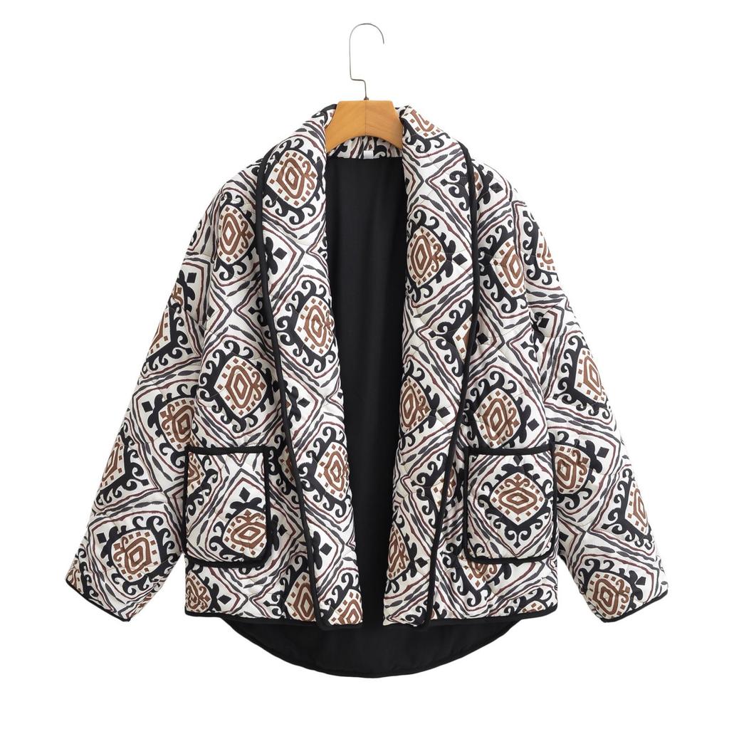 Moda Europea y Americana Otoño/Invierno 2023 Abrigo de Algodón de Dos Piezas con Estampado en Contraste y Cuello Alto
